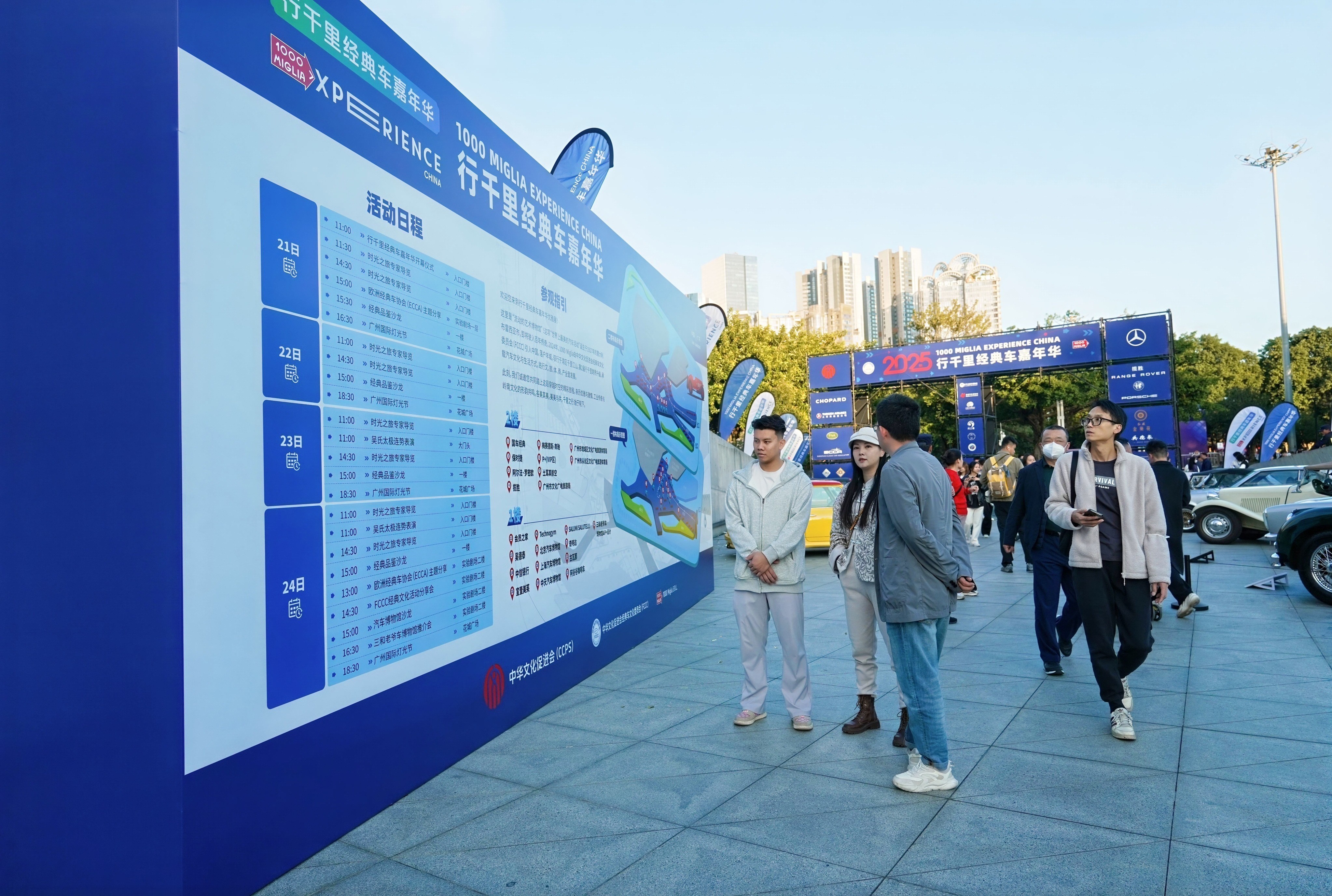 随后一周,11月25日至30日经典车巡游活动即将开启,活动将进入另一个高潮阶段。此次巡游活动将严格遵循意大利1000 Miglia赛事的传统规则和评判标准,将有约80余辆经典车和百余名车手参加。巡游路线将从广州出发,精心规划的路线将途经开平、佛山、清远、英德、增城、从化等地,最终完成全程约1200公里的精彩征程。这条路线不仅考验车手们的精准操控和驾驶技巧,更将展示广东优美的自然风光和深厚的历史文化底蕴。